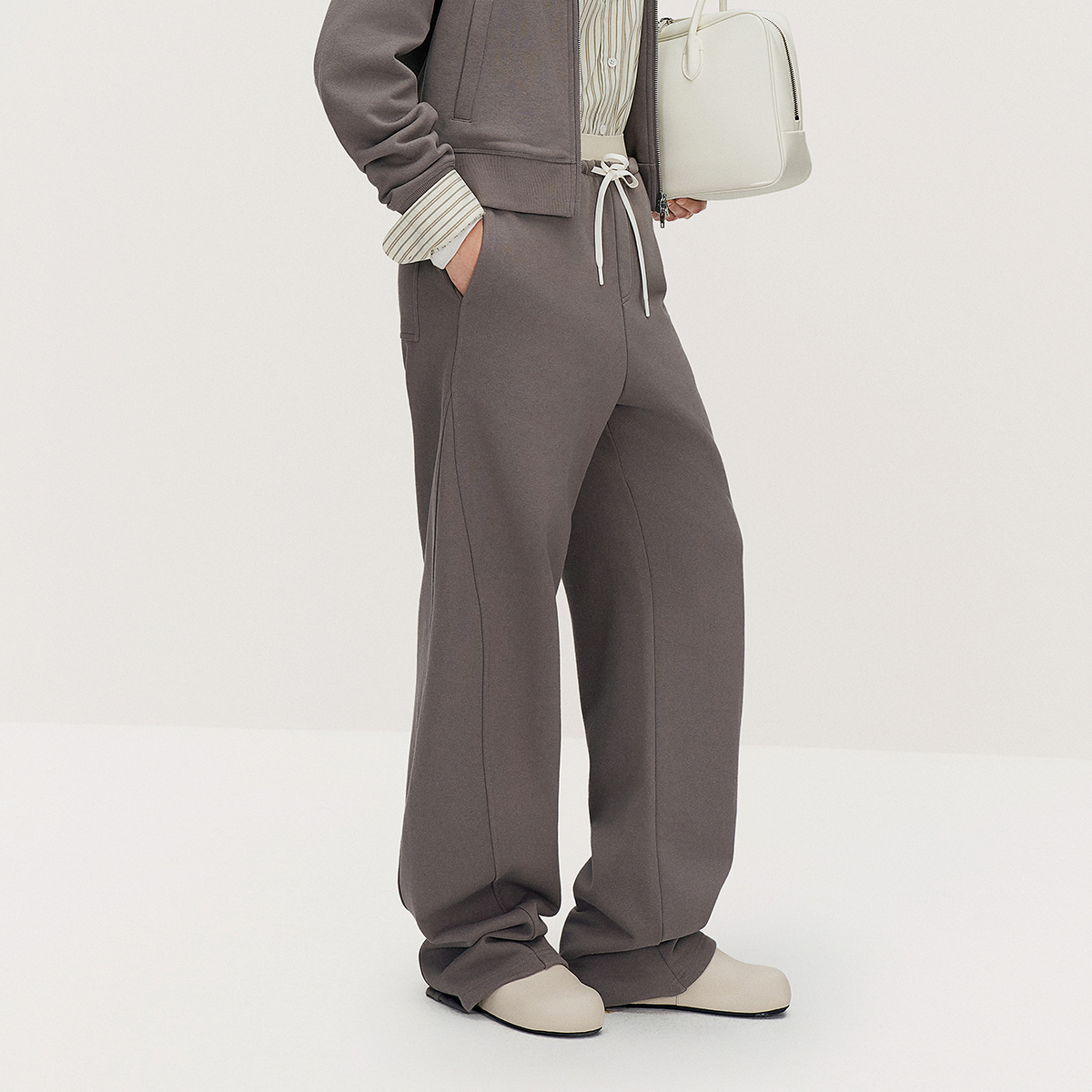 新品 OCHIRLY欧时力 显瘦抽绳秋季 女休闲卫裤 重磅纯棉弯刀裤