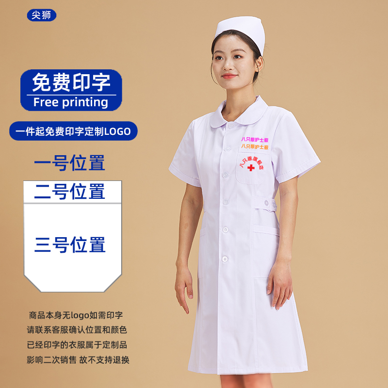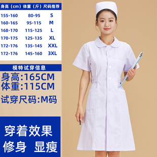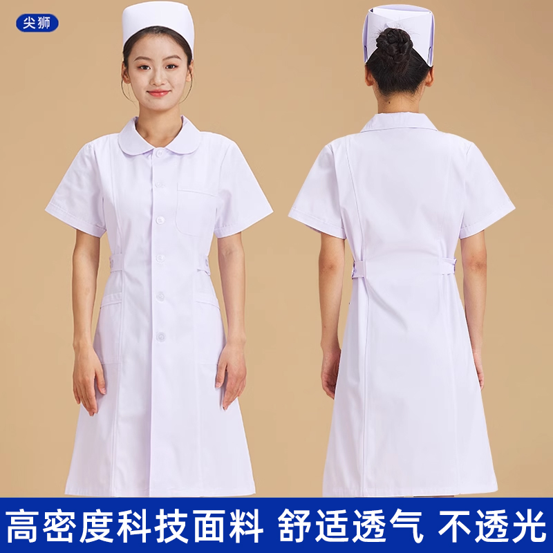 白色娃娃领修身 薄款 学生医院护士工作服大褂 女夏季 圆领护士服短袖
