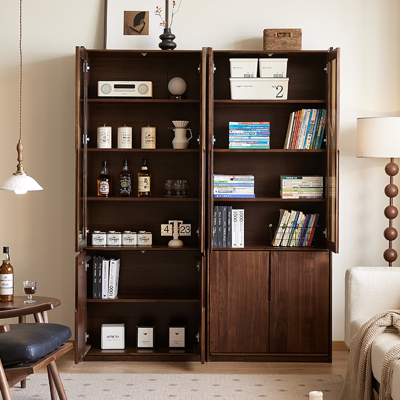 yamoo北美黑胡桃木书柜北欧全实木玻璃展示柜家用书房靠墙储物柜