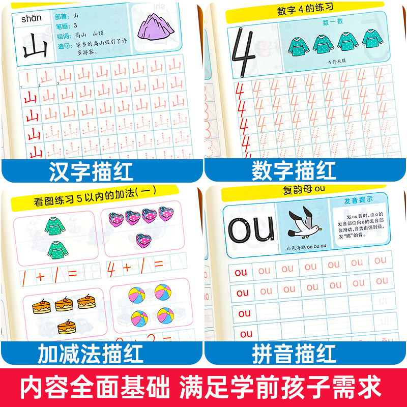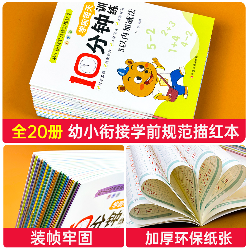 学前每天10分钟 20到50 幼小衔接描红练字帖数字0 100汉字拼音笔画笔顺英文写字本每日一练为一年级做准备学前铅笔练字本