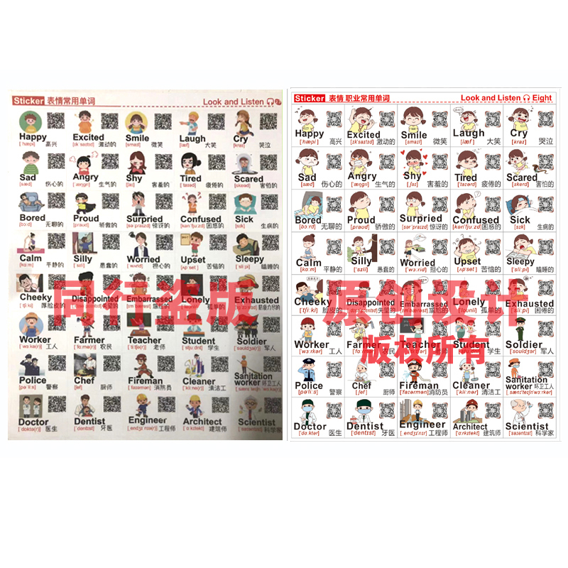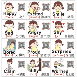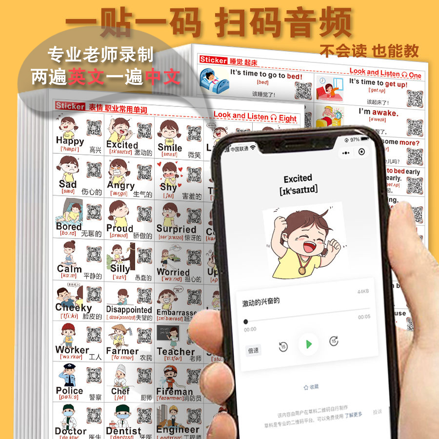 英语口语便利贴纸儿童早教启蒙单词贴日常生活场景常Y用防水标签情景表情粘贴句子英文音标短句老师