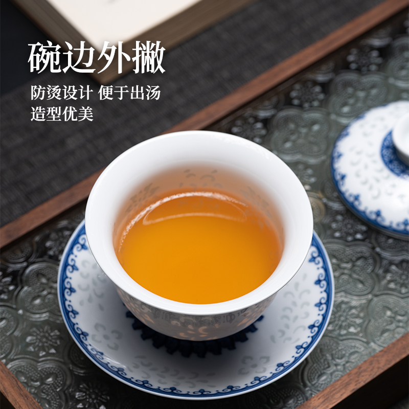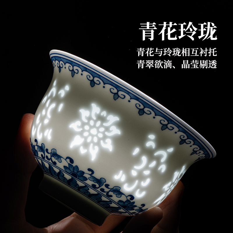 景德镇昌南陶瓷盖碗三件套青花瓷三才盖碗单个高档玲珑功夫泡茶杯