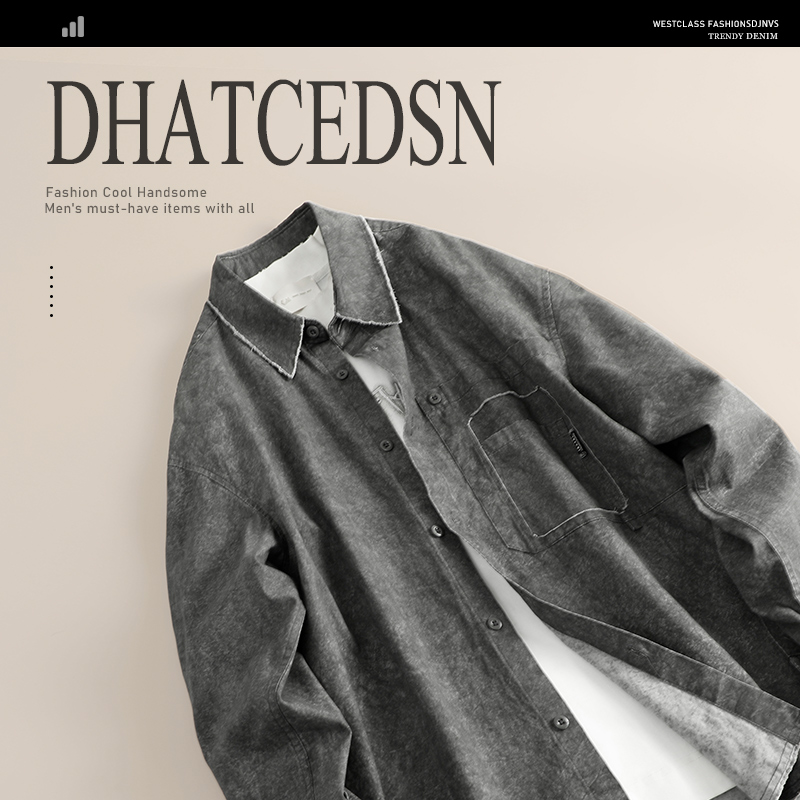 夹克多口袋衬衫 hansca美式 宽松翻领工装 新款 男 牛仔外套男2025秋季
