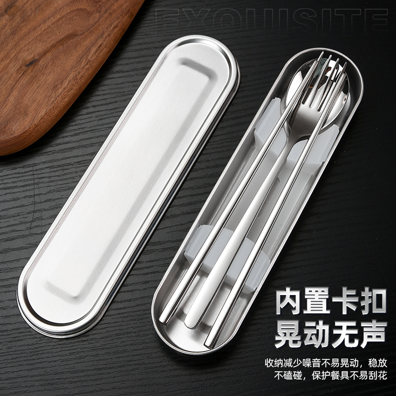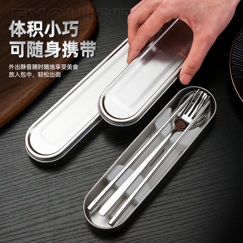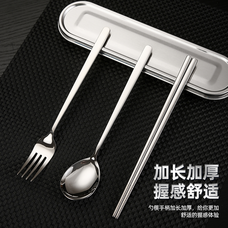餐具套装 316不锈钢便携304学生专用筷子勺子叉三件套收纳盒旅行