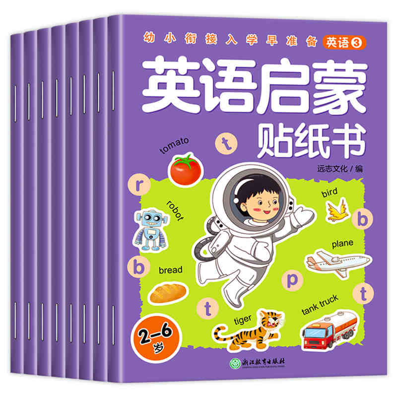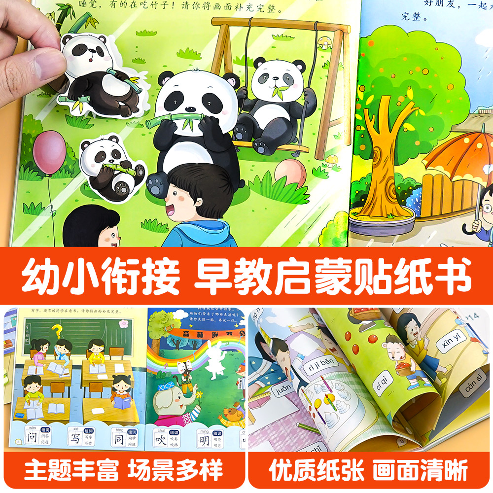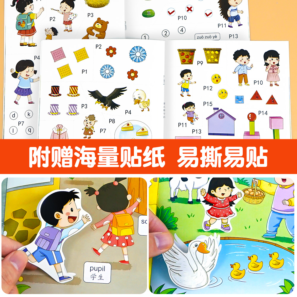 宝宝贴贴画1 儿童益智全脑逻辑思维游戏训练幼儿园书籍 0到3岁到6岁启蒙认知书 英语启蒙贴纸书 5岁粘贴纸早教绘本 全8册