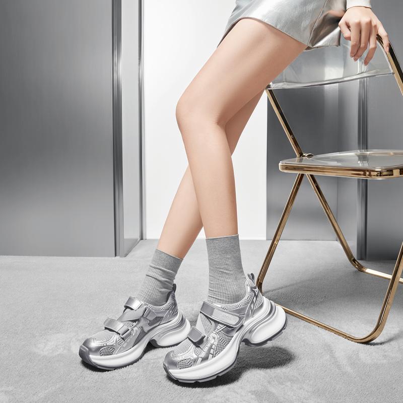 2025春季 百搭增高休闲鞋 新款 透气运动凉鞋 女 厚底老爹鞋 骆驼女鞋