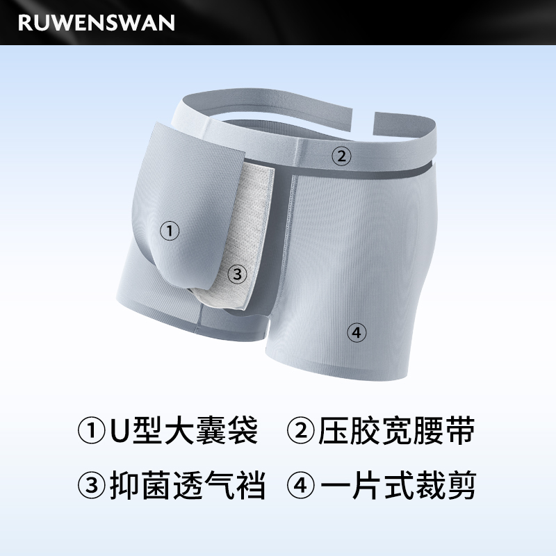 冰丝透气四角短裤 3件 莫代尔大码 平角内裤 男生 蕉内银皮500E男士