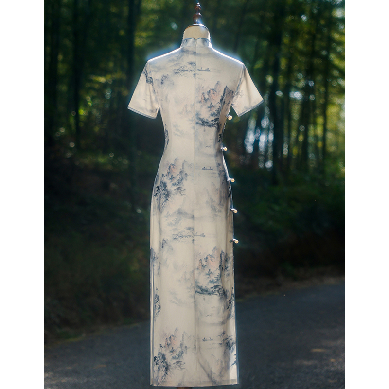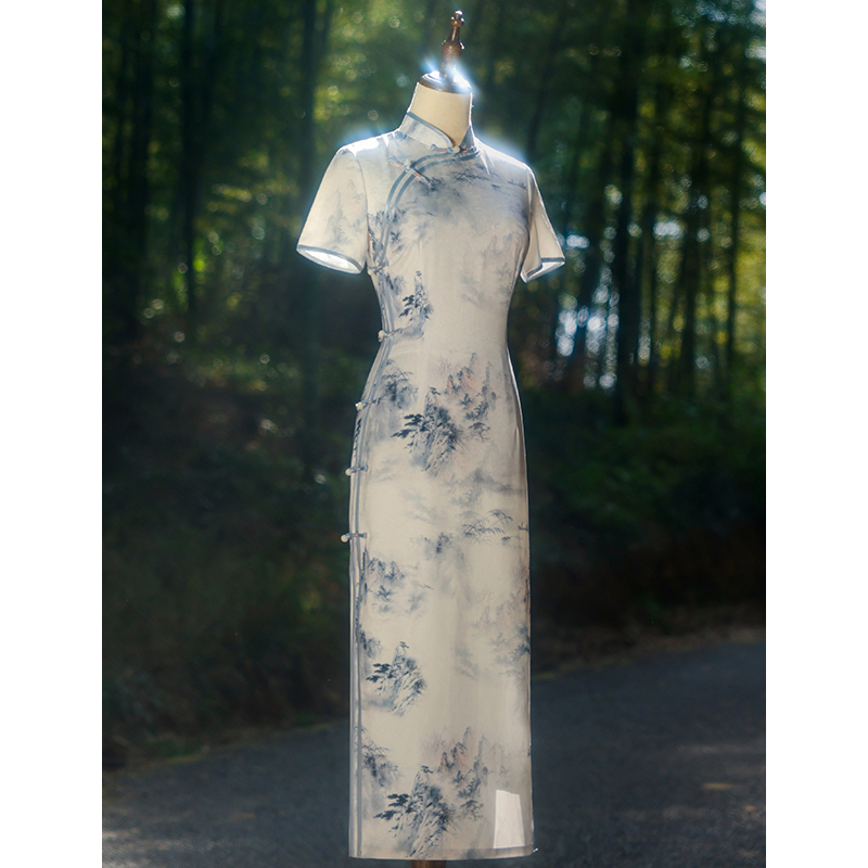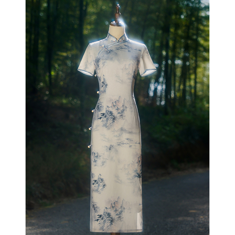 日常新中式 新款 连衣裙 民国风旗袍2025年夏季 绣玫水墨幽情年轻款