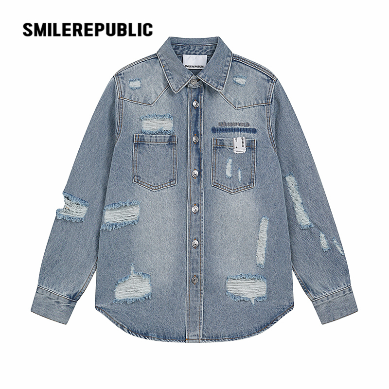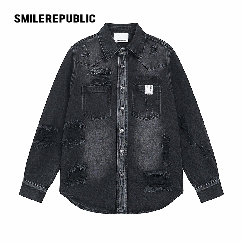 日系水洗复古潮牌痞帅工装 男2025秋季 衬衣外套 牛仔衬衫 hansca长袖