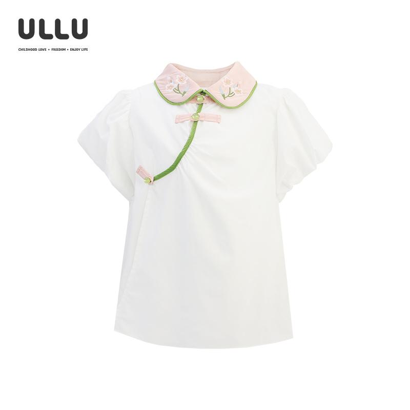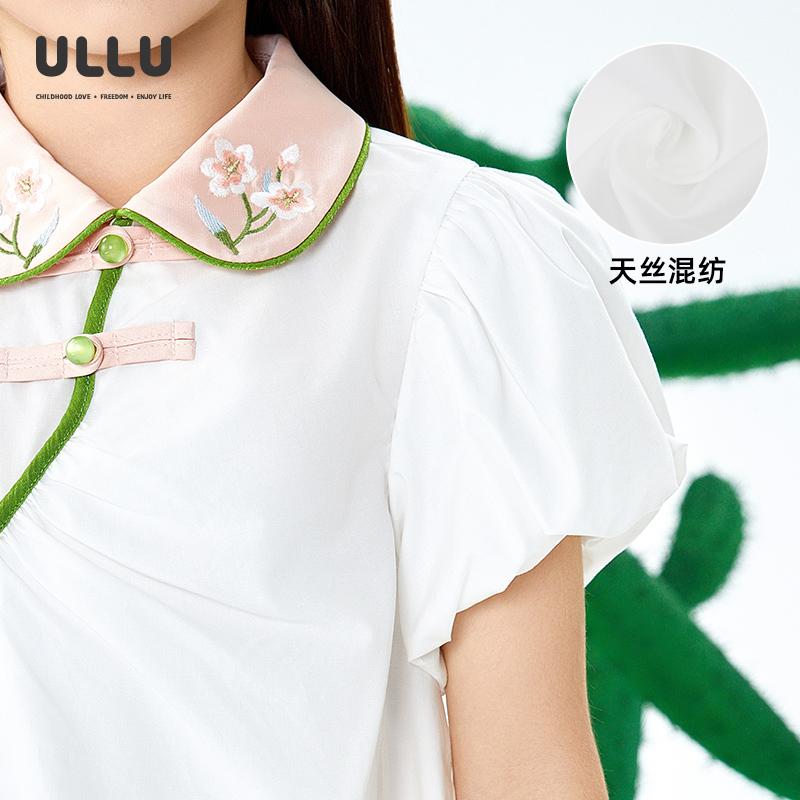 女童短袖 国风绣花翻领白衬衫 衬衫 全开襟新中式 ULLU夏新款 优露童装