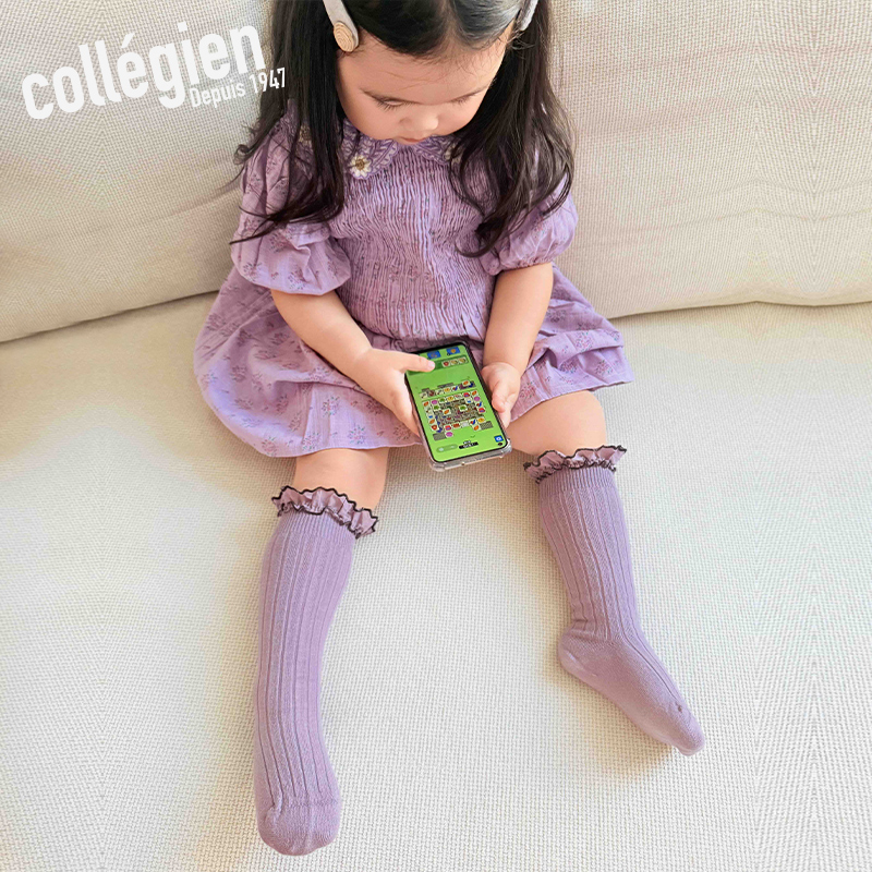 法国Collegien中筒袜女童袜子春秋埃及长绒棉花边公主袜ins潮袜
