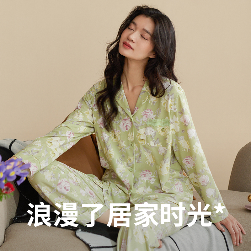超柔软抑菌 碎花可外穿家居服套装 纯棉睡衣女秋季 法式 长袖 秋鹿
