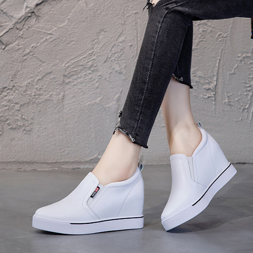 一脚蹬懒人小白鞋 百搭透气显瘦坡跟单鞋 2025年新款 真皮内增高女鞋