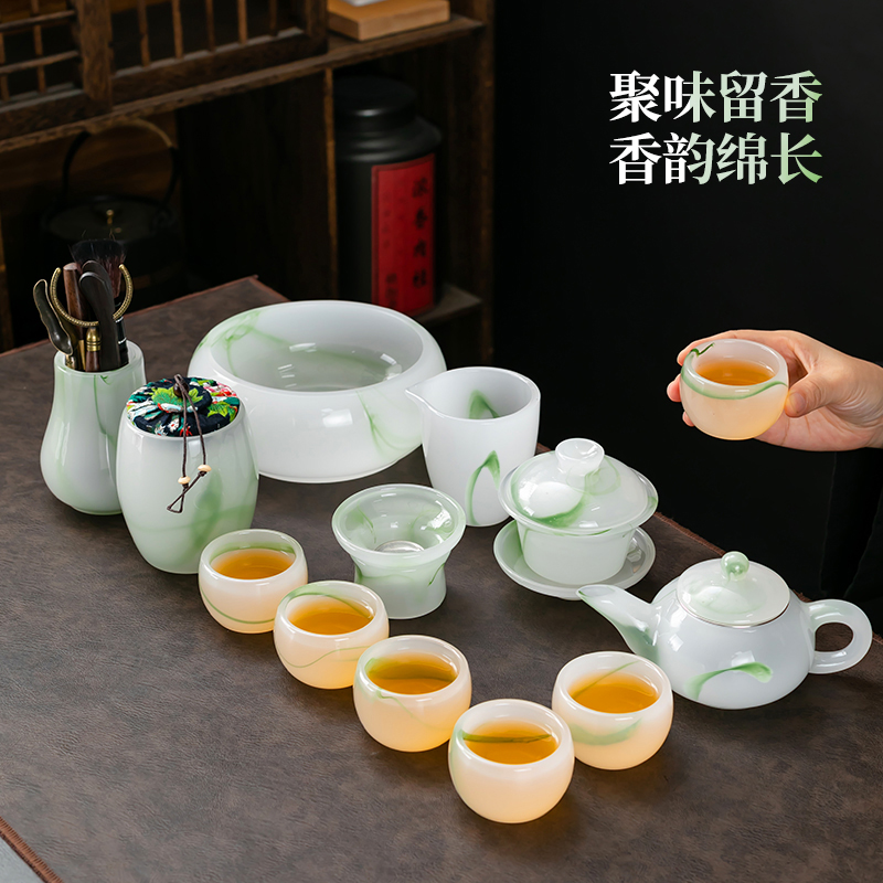 琉璃水墨茶具套装 礼盒 轻奢功夫茶杯家用盖碗定制刻字泡茶2024新款