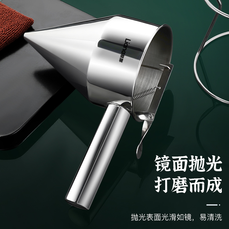 联娜章鱼小丸子漏斗锥形面糊漏斗鱼丸不锈钢鱼丸漏斗带架把手可拆