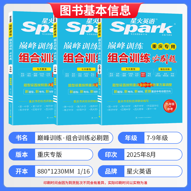 2026届星火英语巅峰训练组合训练必刷题七年级八年级九年级中考重庆专用 完形填空阅读理解语法选择概要补全完成句子重庆中考真题
