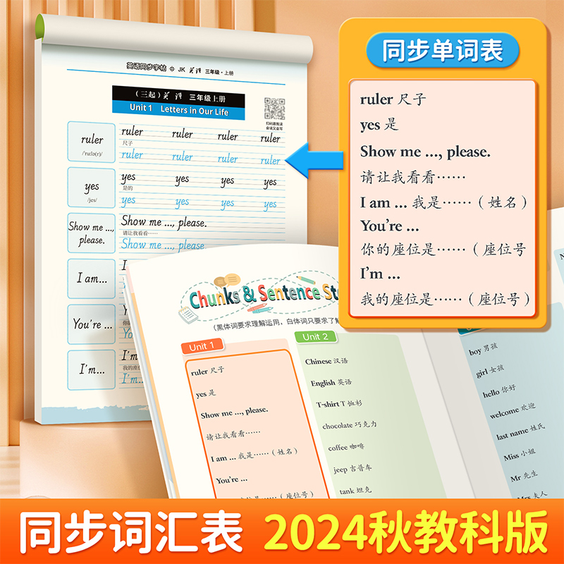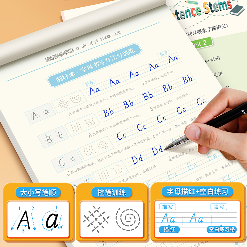 2024年秋新版 三年级英语同步练字帖3年级上册国标手写体单词字帖小学生临摹纸专用每日一练英语26个字母斜体字帖 广州教科版