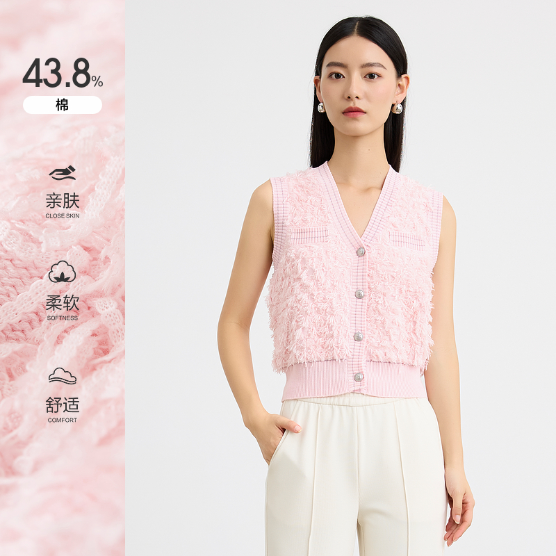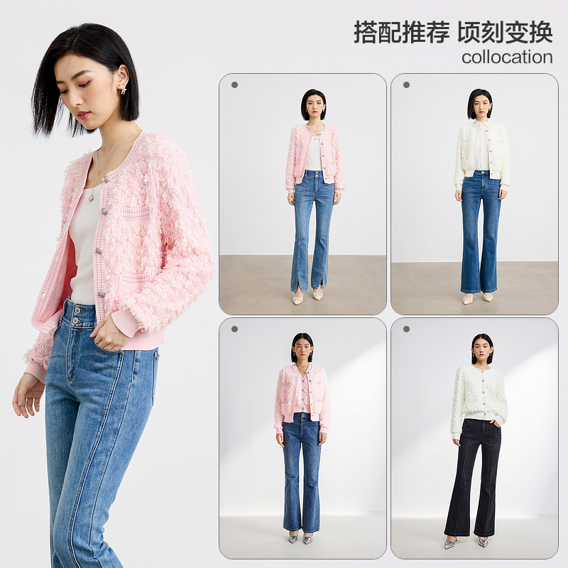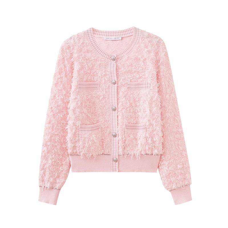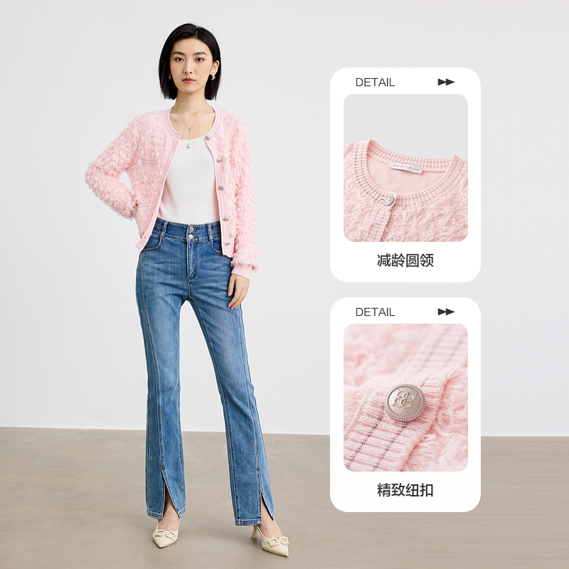 圆领宽松软糯慵懒风上衣女装 贝壳纽扣开衫 冬季 三福毛衣女2025新款