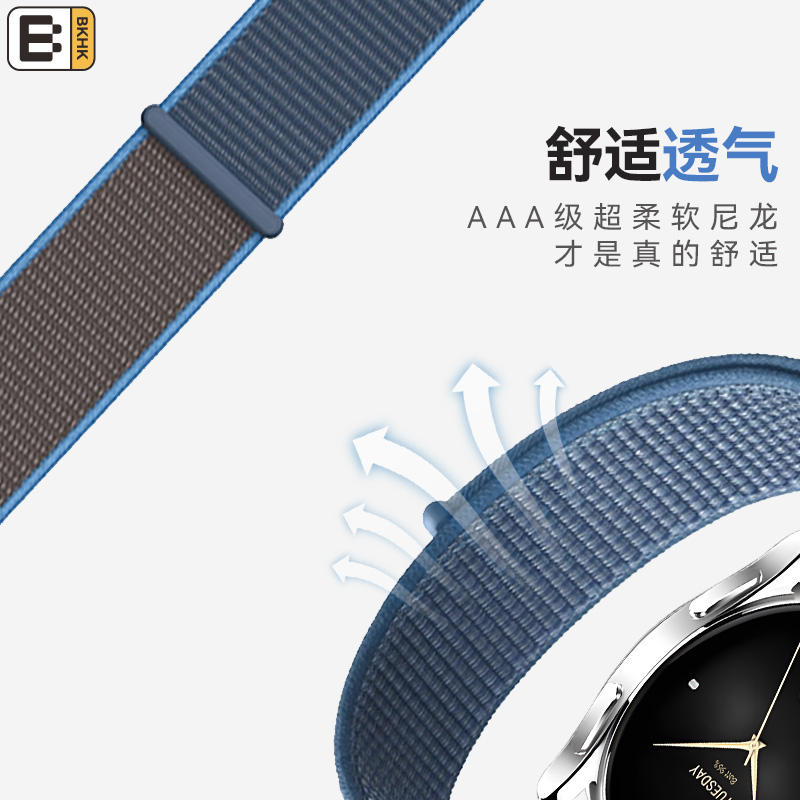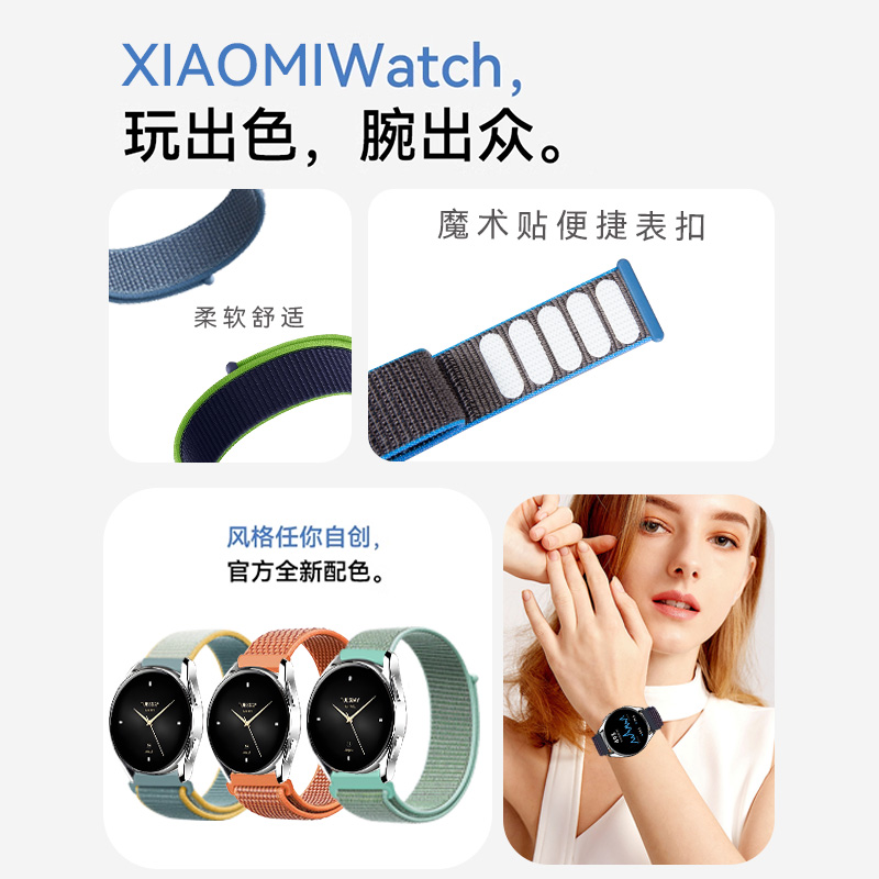 柔软透气亲肤表链男女新款 4sport表带color 1pro时尚 薄 2超轻尼龙回环魔术贴腕带s2 适用于小米手表watch