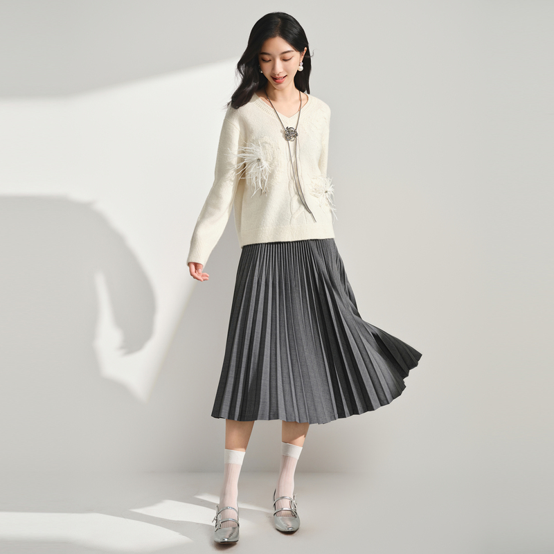 高级感上衣宽松打底针织衫 圆领100%纯山羊绒衫 女高端毛衣秋冬新款