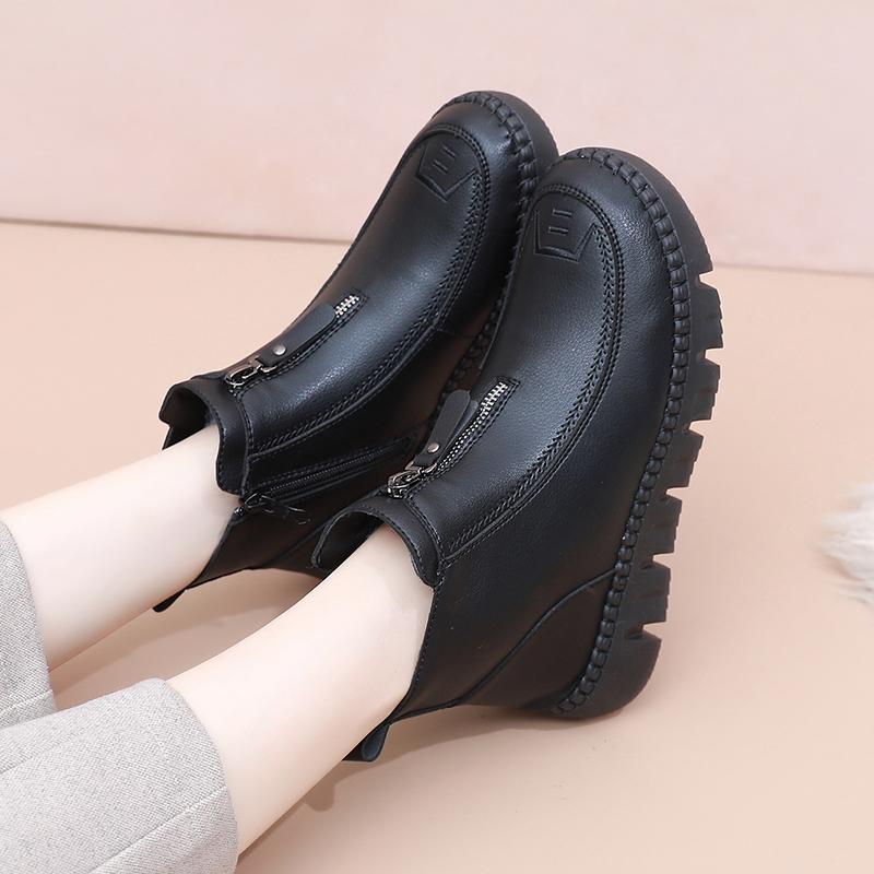 中帮机车靴子男生增高皮靴 2025新款 马丁靴男款 英伦风黑色高帮皮鞋