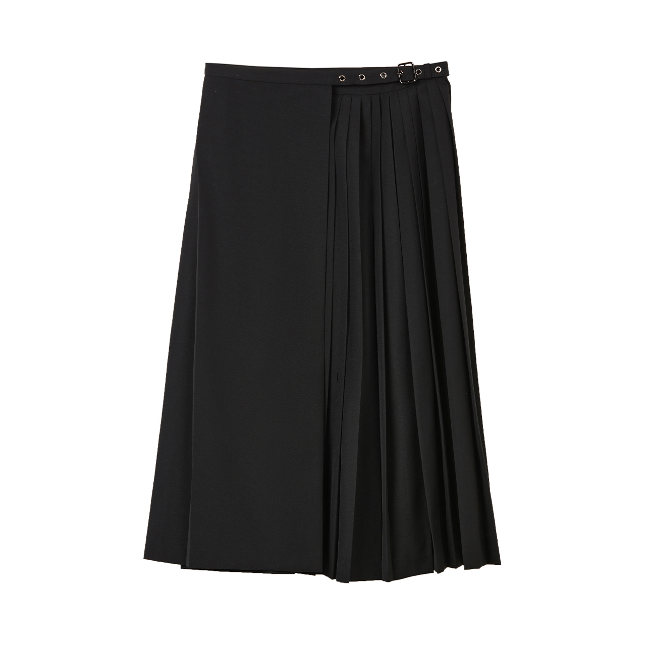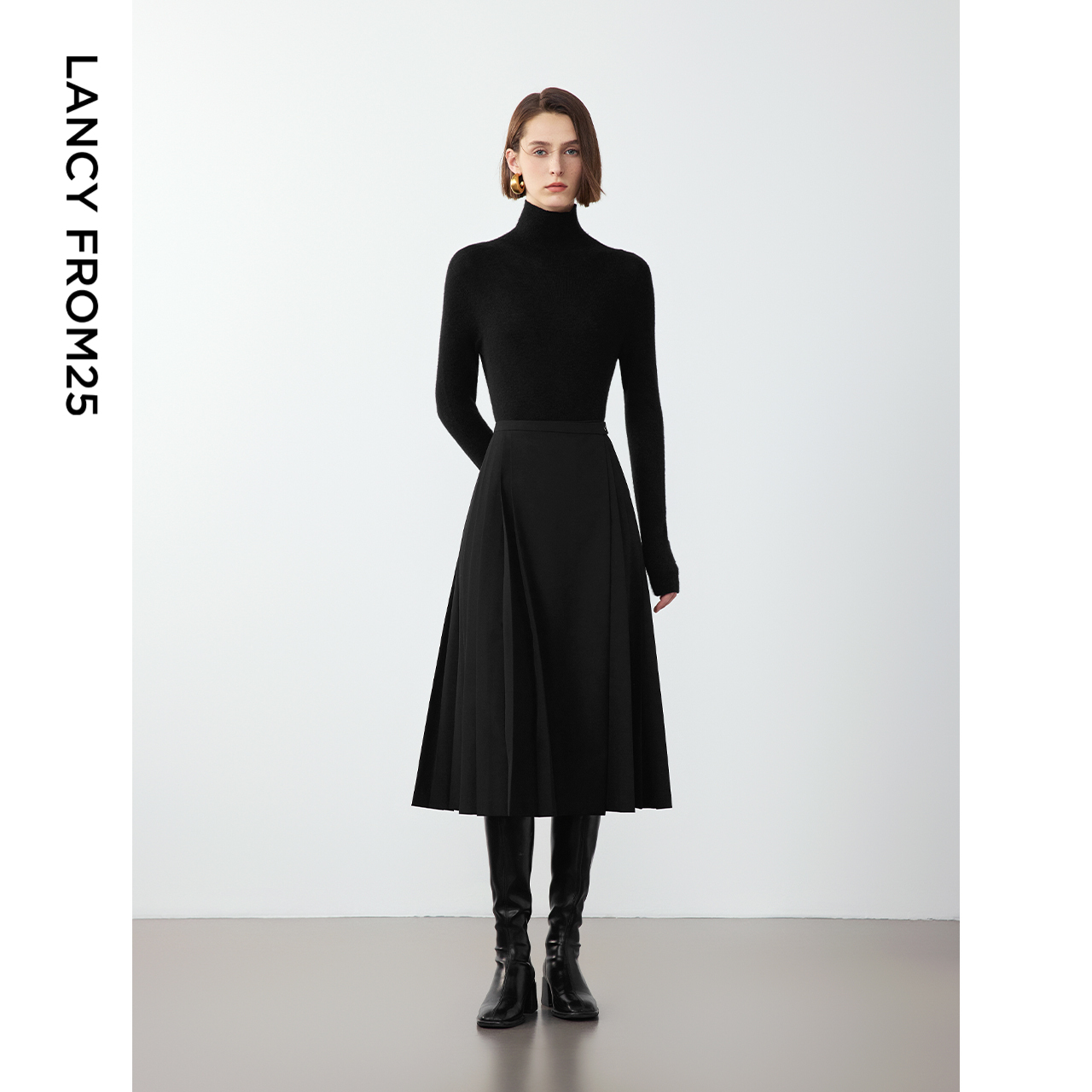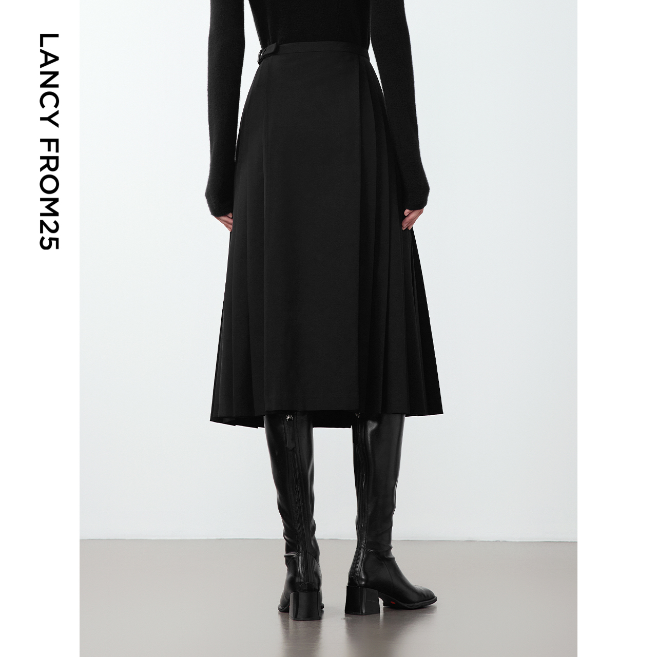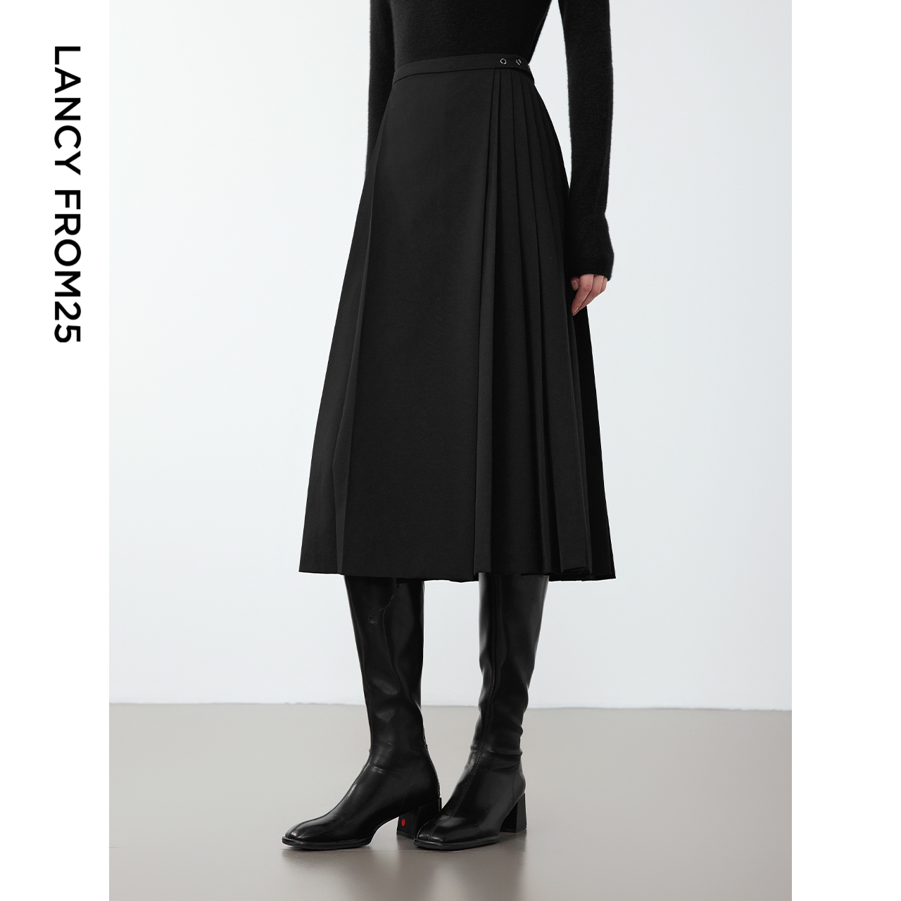 朗姿法式 高腰气质显瘦黑色高级感收腰A字半身裙百褶裙2024冬新款