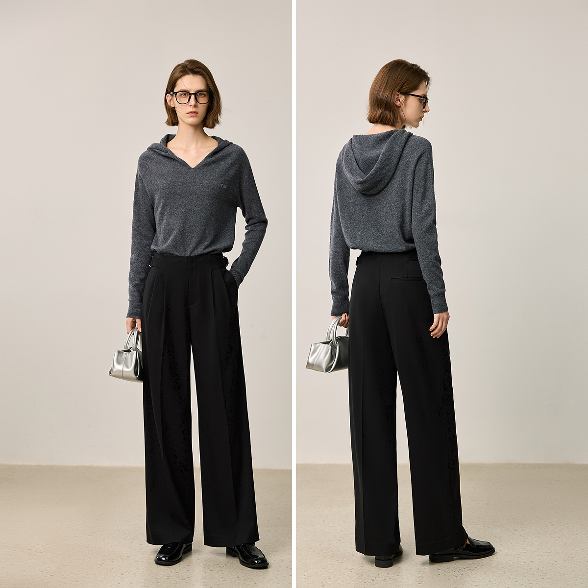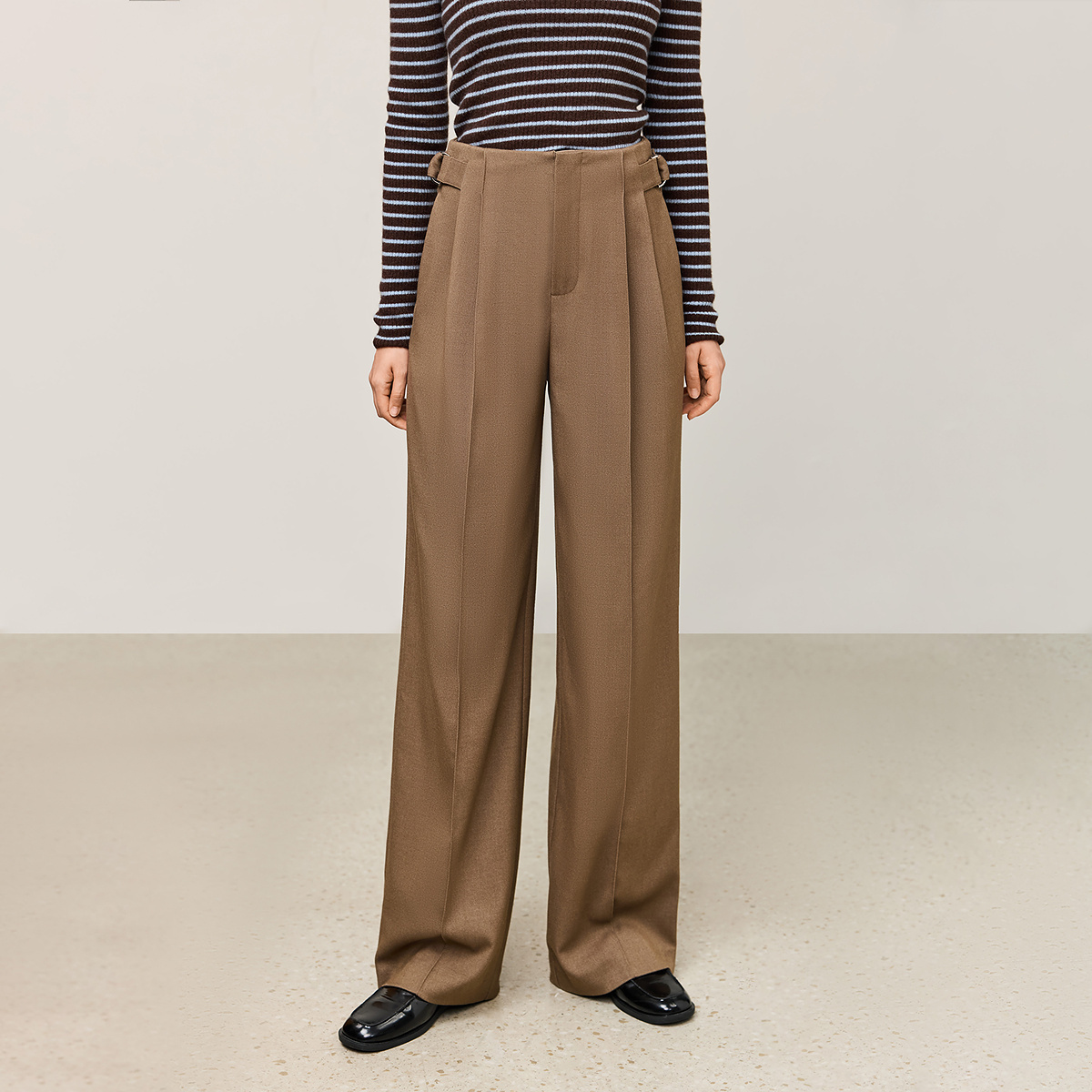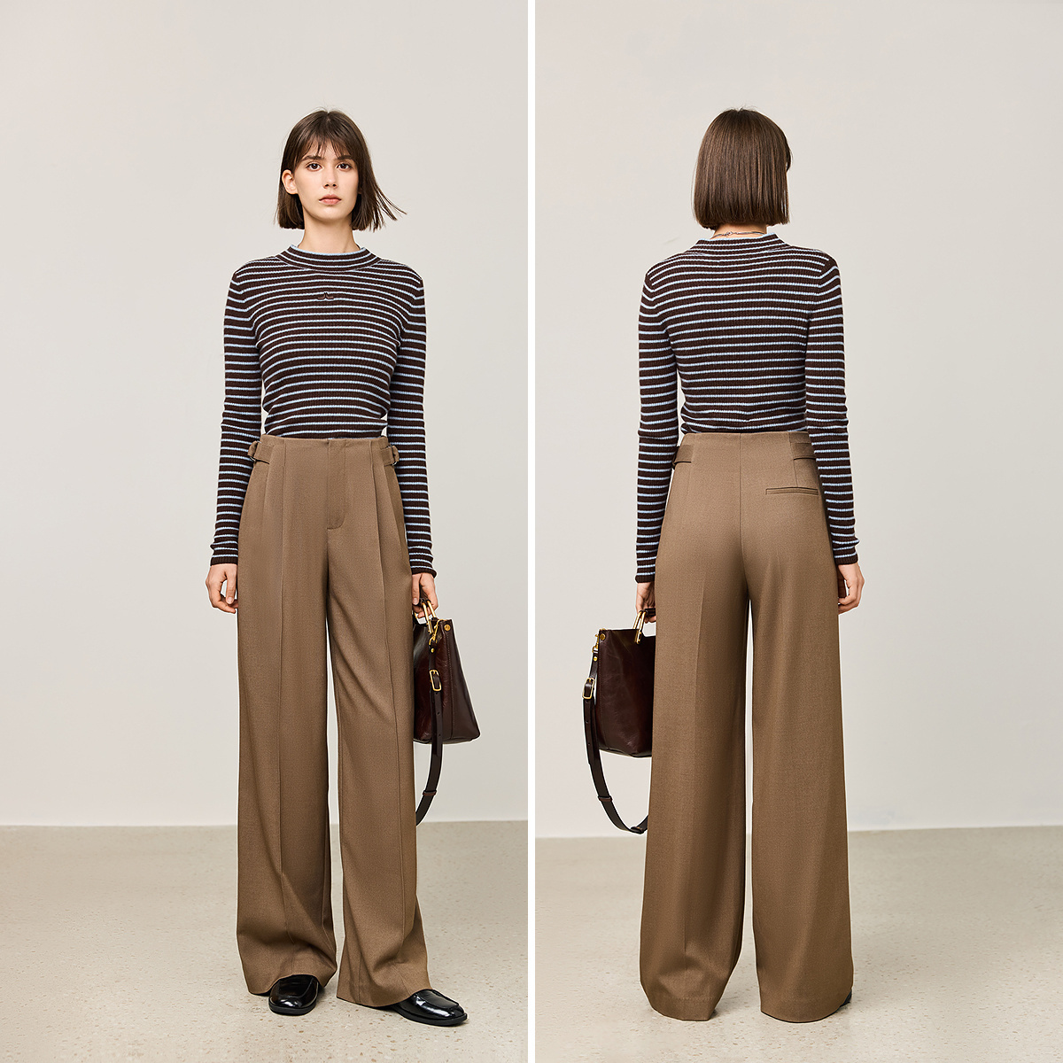 休闲裤 LILY冬新款 复古高腰压褶垂感通勤阔腿裤 气质经典 女 女装