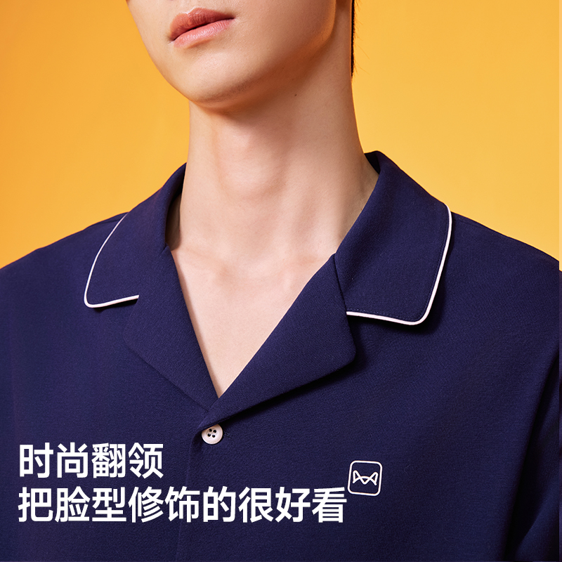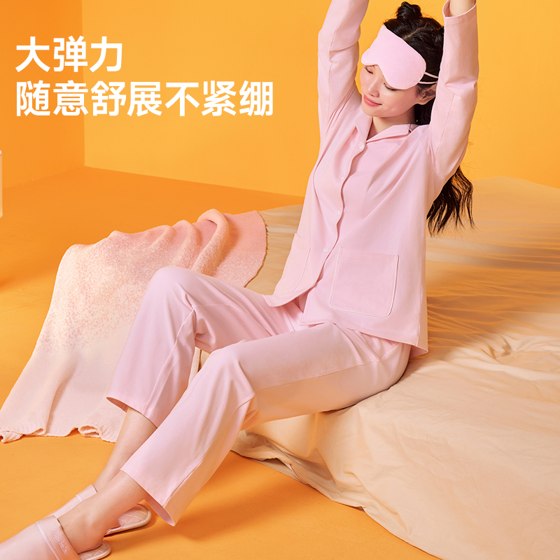情侣柔软棉氨家居服套装 秋冬纯棉翻领长袖 2025新款 猫人睡衣女款