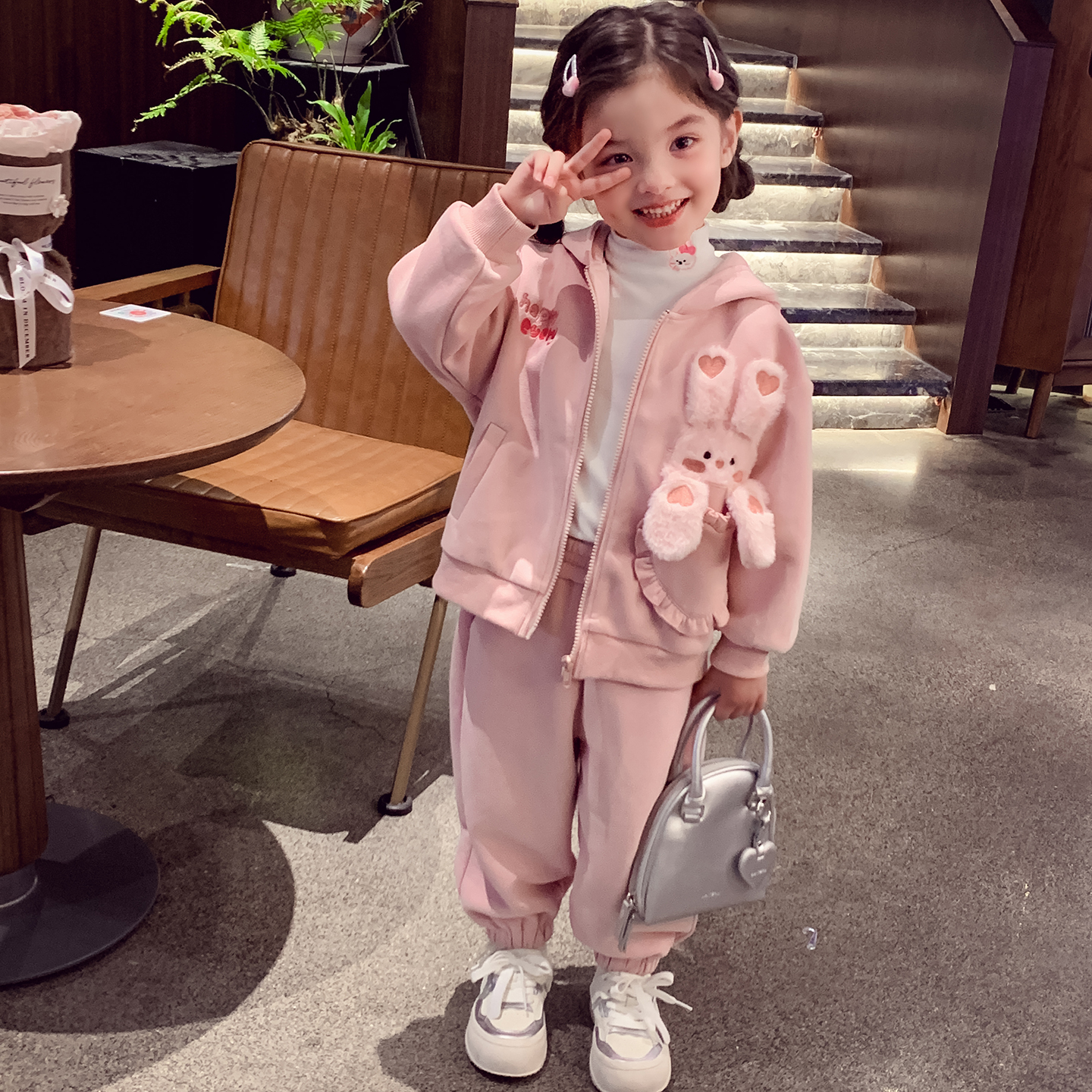 外套卫衣卫裤 女童运动休闲套装 女孩连帽长袖 2025新款 两件套 秋冬装