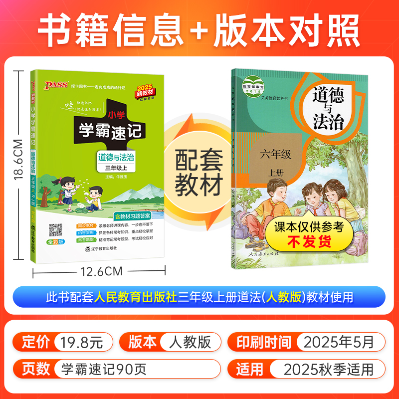 2025新版 知识点汇总速查速记提要同步解读复习知识点考试前背诵便携工具书PASS绿卡图书 小学学霸速记三年级上册道德与法治人教版
