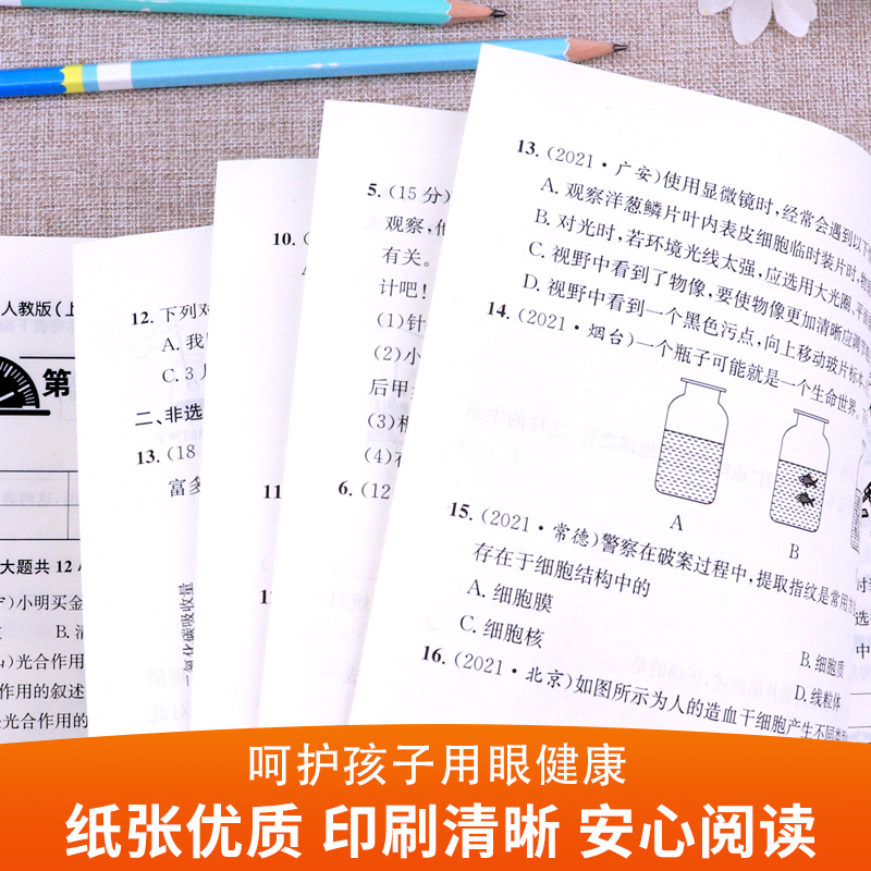 中考真题卷子中学教辅 辅导复习资料 期中期末月考练习题 初中初一7年级下册测试卷必刷题人教版 七年级上册生物试卷同步练习册全套
