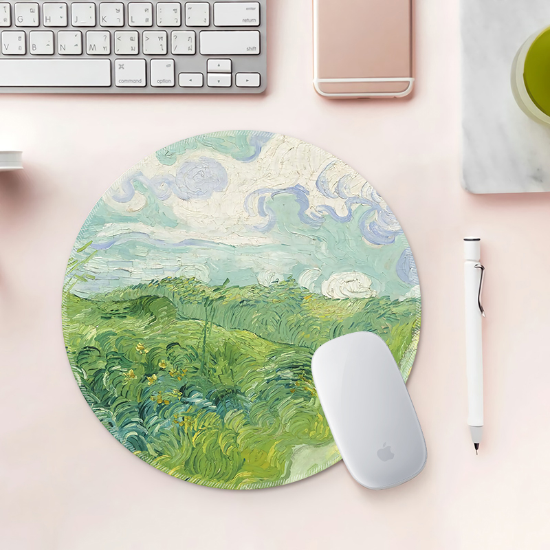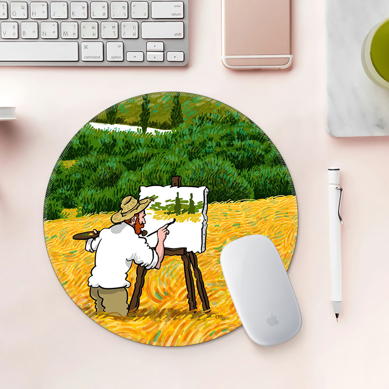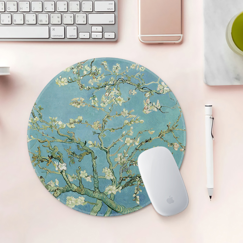 世界名画艺术桌垫梵高油画鼠标垫小号圆形锁边办公护腕便携键盘垫