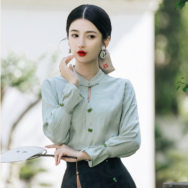 打底衫 修身 莱赛尔天丝T恤女亨利领长袖 紧身内搭上衣 Chapelle