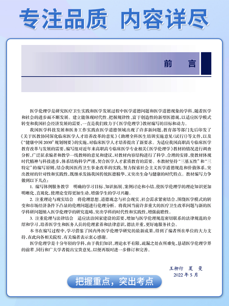 配增值国家卫生健康委员会十三五规划教材王柳行夏曼主编人民卫生出版 高专临床 社9787117333719 医学伦理学 现货