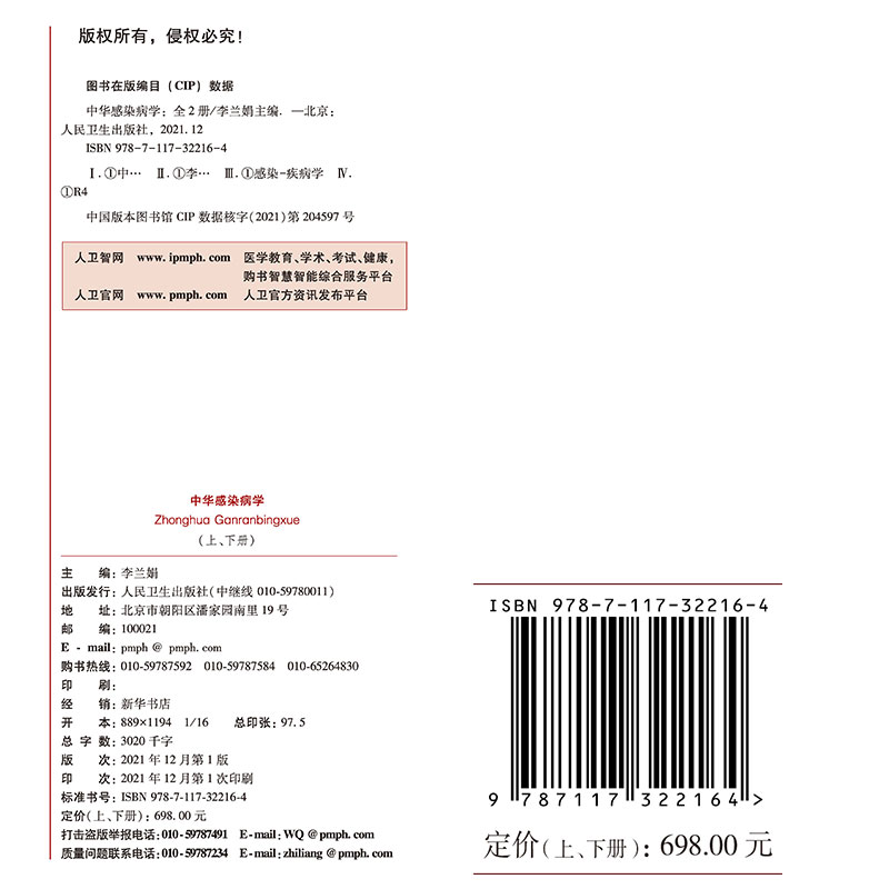 现货 中华感染病学上下册李兰娟新型冠状病毒肺炎严重急性呼吸综合征中东呼吸综合征人染甲型H7N9禽流感甲型禽流感埃博拉人民卫生