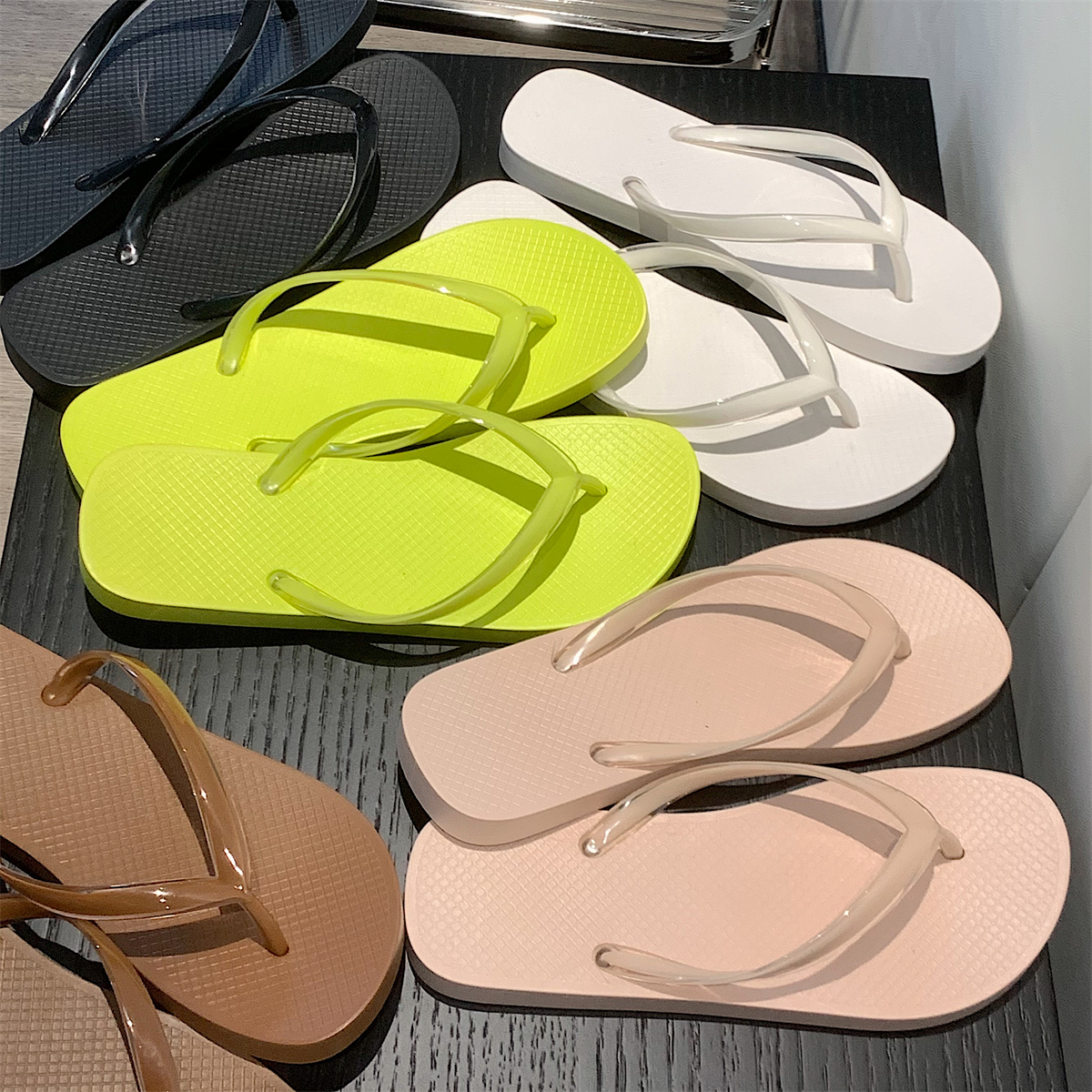ins休闲外穿海边防滑软底沙滩夹脚凉拖鞋 女夏纯色简约果冻人字拖