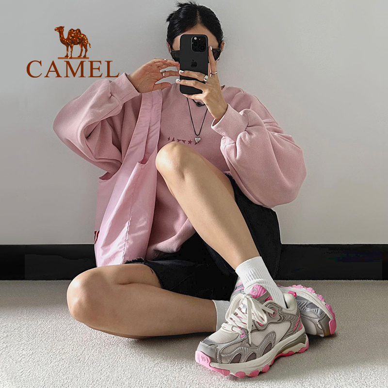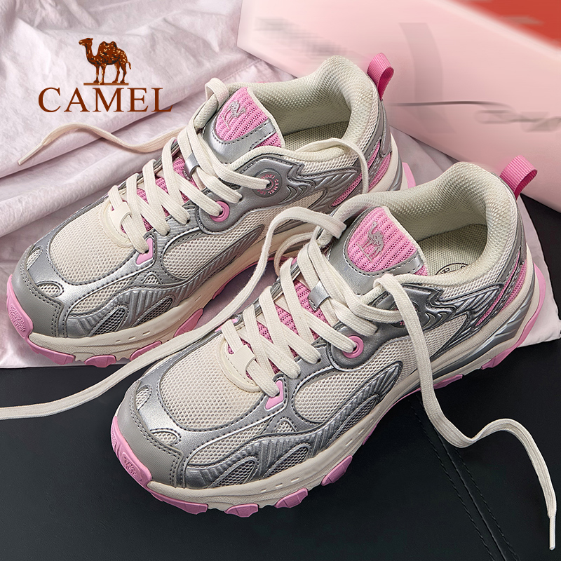 心动版 女复古老爹鞋 脏脏粉新款 网面透气运动鞋 女鞋 骆驼漫游慢跑鞋