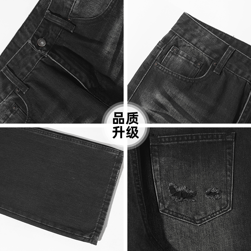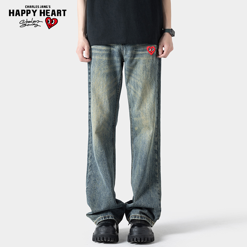 宽松直筒休闲长裤 查尔斯桃心美式 新款 男春秋季 复古水洗渐变牛仔裤