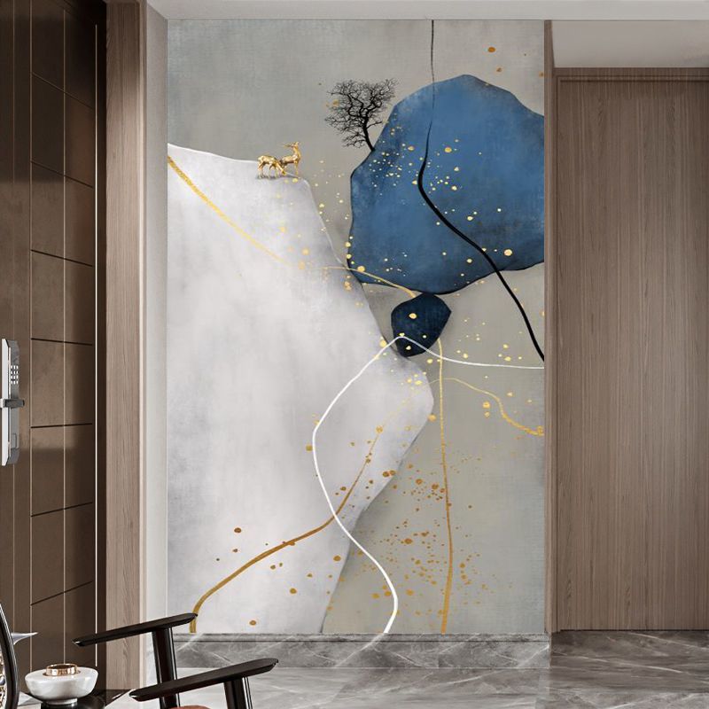 时来运转玄关背景墙壁纸寓意好现代轻奢入户走廊大气竖版 过道壁画