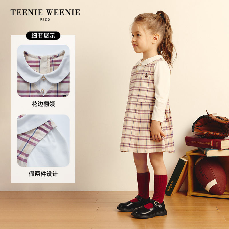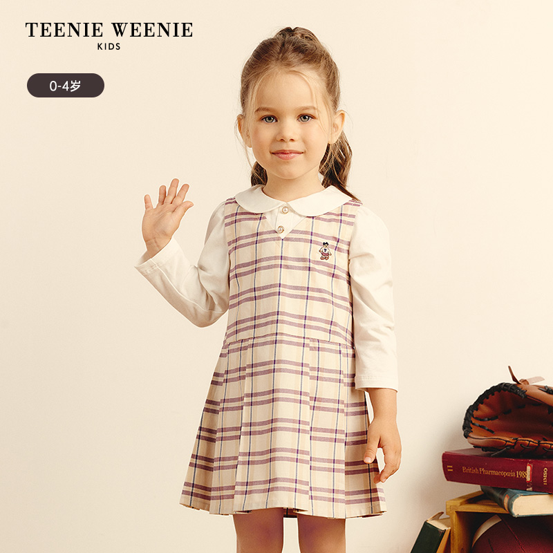 女宝宝经典 秋季 格纹翻领假两件连衣裙 Kids小熊童装 TeenieWeenie
