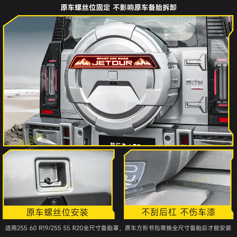 加厚8AT不锈钢带灯备胎改装 捷途旅行者 山海T2全尺寸备胎罩大G款