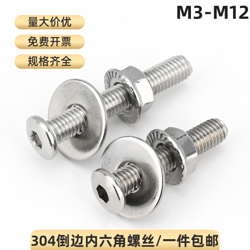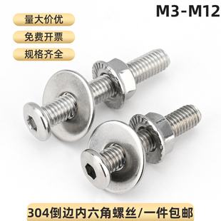 304不锈钢倒边内六角螺丝家具组合螺丝大垫片螺母套装 床橱柜螺丝