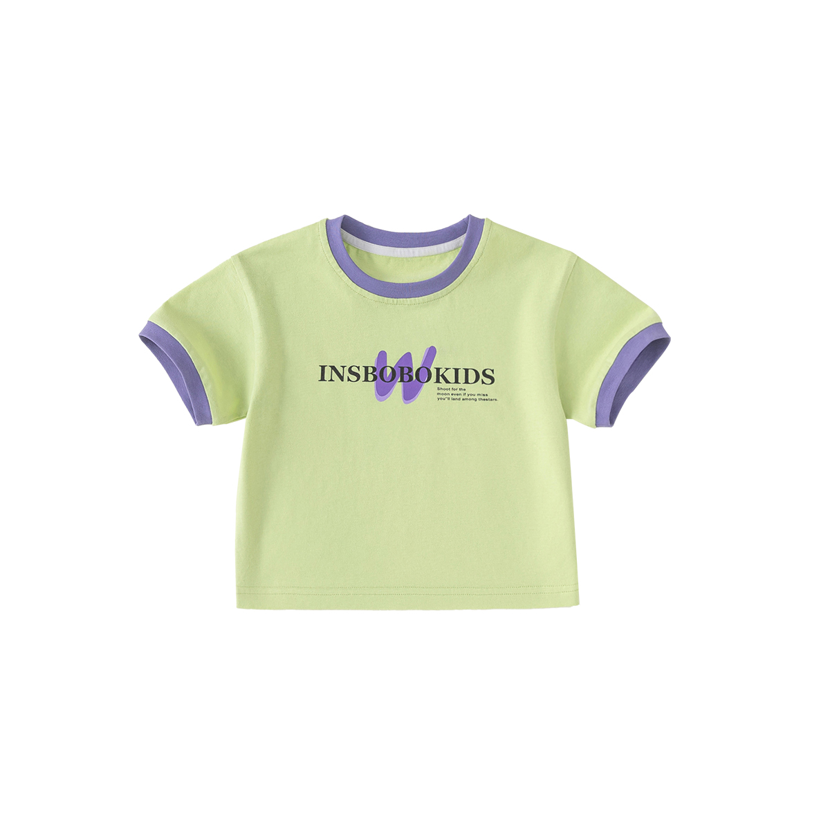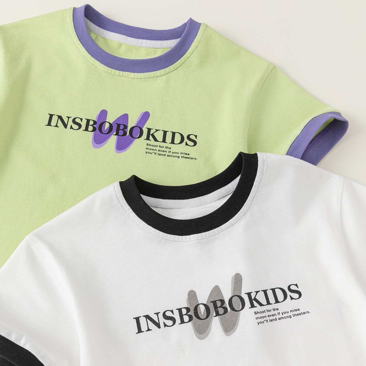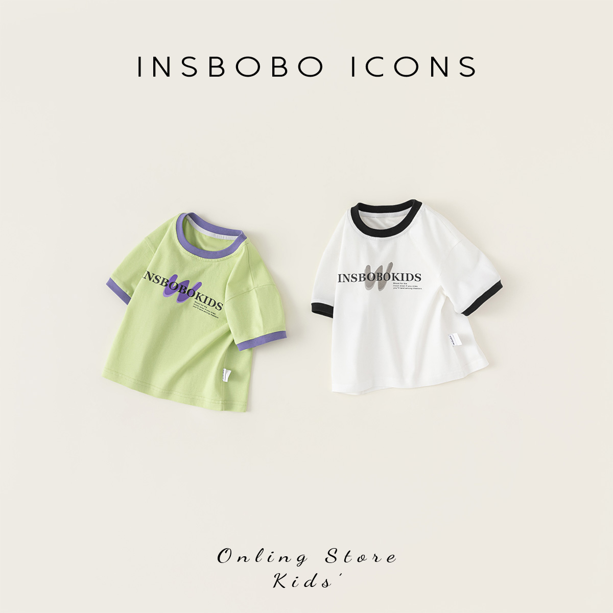 t恤字母印花拼色休闲风童装 儿童新款 男洋气夏 短袖 INSbobo男童夏装