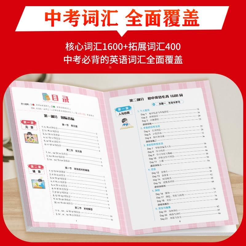初中英语必背1600词中考英语词汇七八九年级英文高频单词记背神器默写本通用版 初一初二初三英语专项训练语法工具书知识点速记