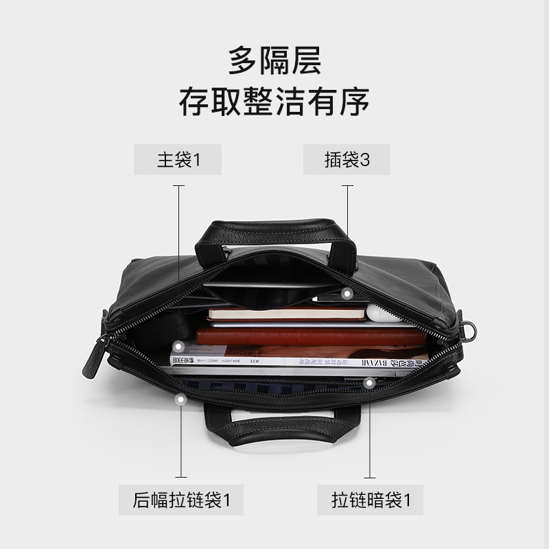 皮尔卡丹男士 真皮大容量手提包 电脑牛皮公文包单肩斜挎包商务男式