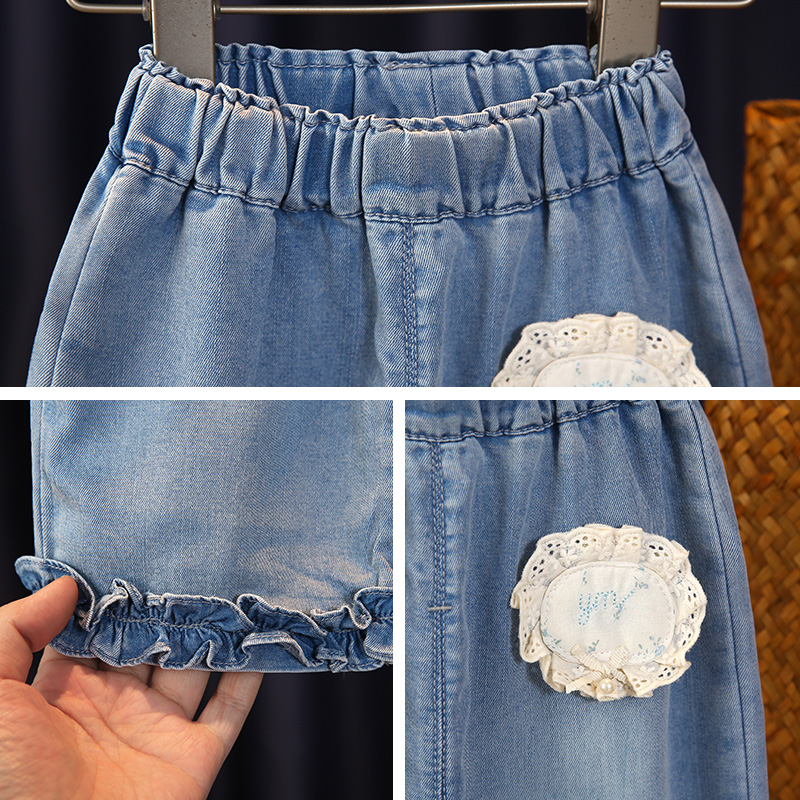 宝宝天丝软牛仔裤 女童裤 女孩洋气好看儿童九分裤 2025新款 子夏薄款