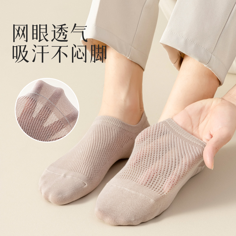 浅口隐形防滑不掉跟船袜 网眼透气短筒棉袜男款 猫人袜子男夏季 薄款