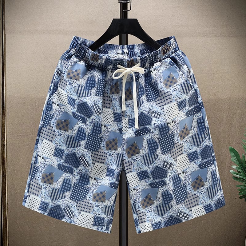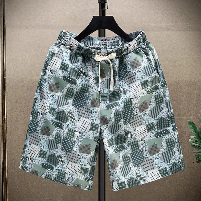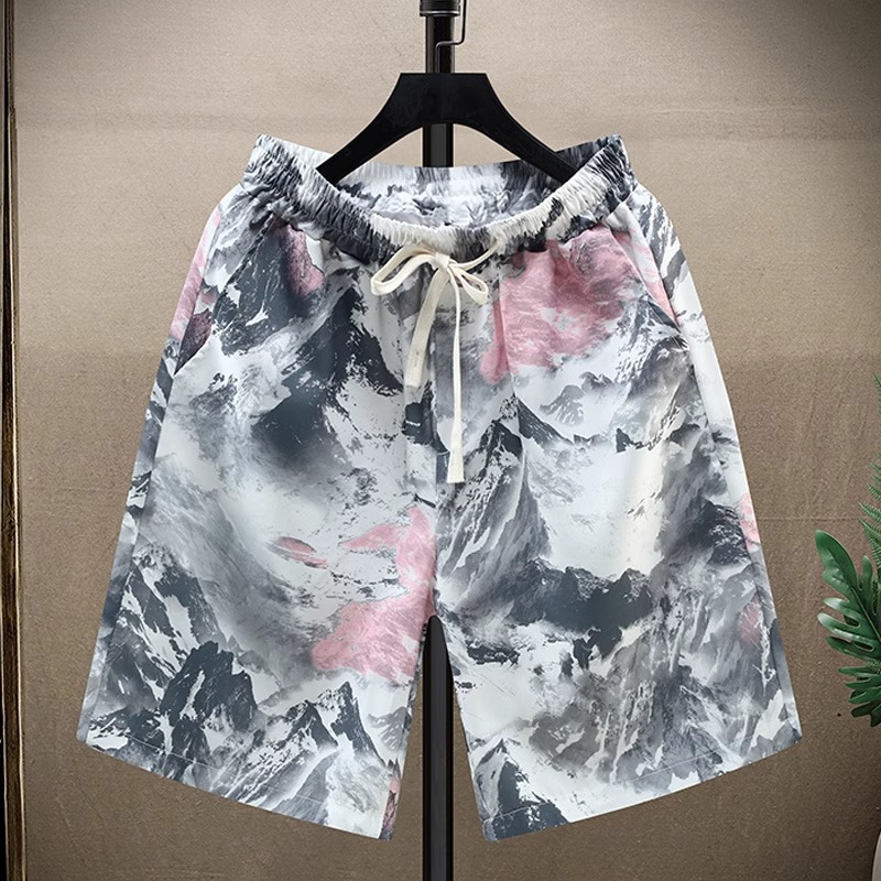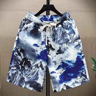 男夏季 外穿2025夏天裤 沙滩裤 衩海边宽松五分裤 子 速干花裤 冰丝短裤