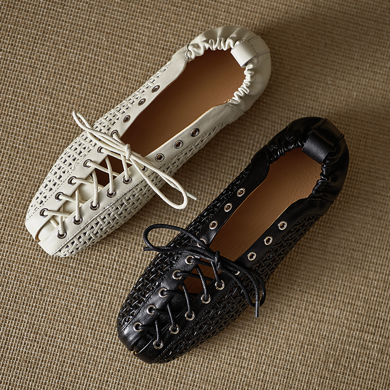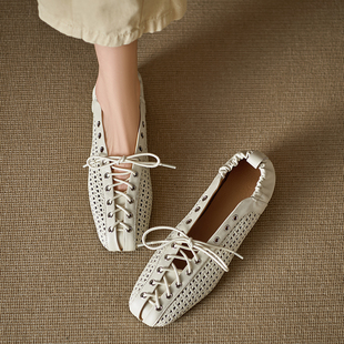 平底女鞋 百搭软面欧货单鞋 镂空编织玛丽珍复古一字带凉鞋 2025夏季