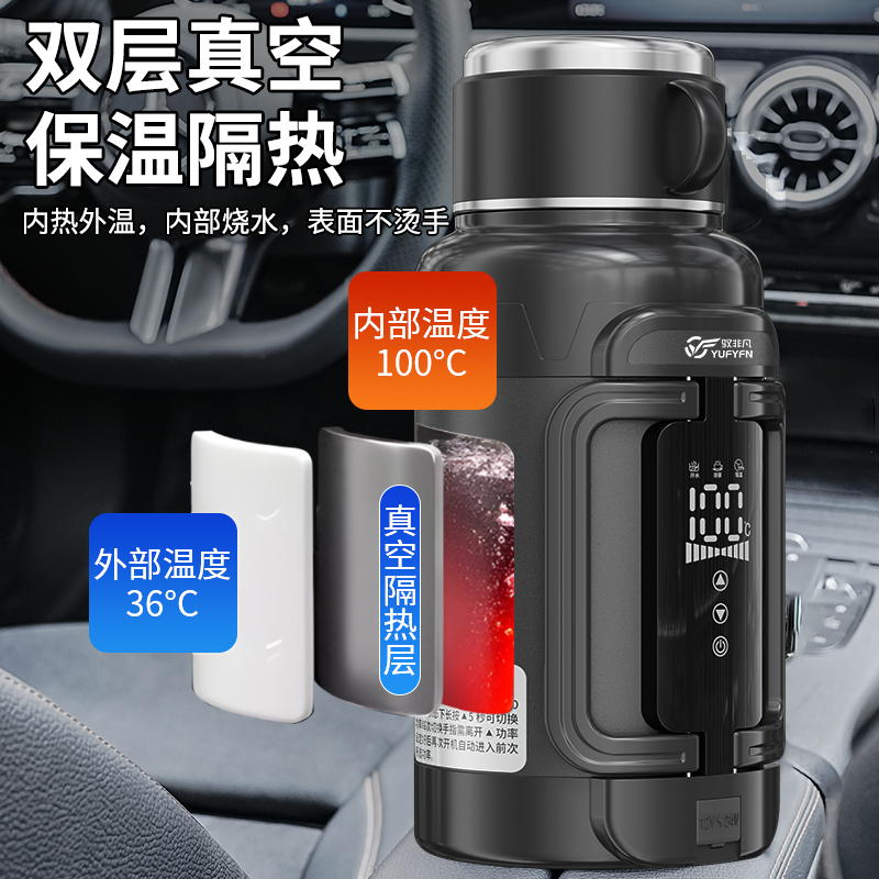 2025新款 车载烧水壶12v24v轿车货车通用电水壶车家用两用热水器
